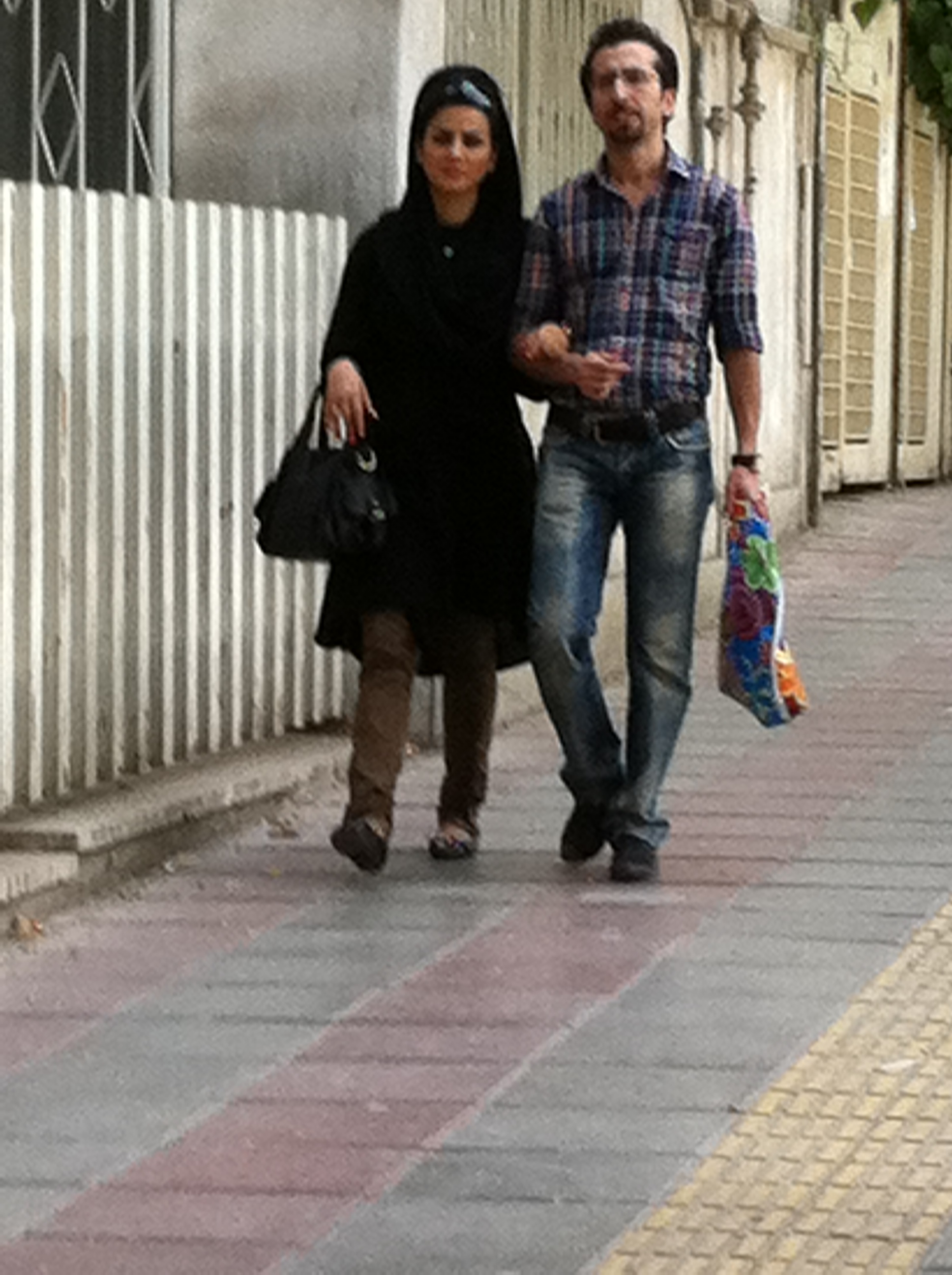 From that point forward, it was smooth sailing for the most part. Coming down the escalator, I looked to my left at a ginormous crowd of people behind a glass wall gathered around waiting for their loved ones to descend. I couldn’t stop staring at the faces — the first time I’ve ever seen solely all Iranians, everywhere — and noticed that a big group of Tehrani girls were giggling and pointing at me. They were gorgeous — fashionistas with beautifully painted faces, locks of silky hair falling from their silky veils and form-fitting designer tunics showing off their figures. And they were total making fun of me. One of them took her scarf and wrapped it around her head, tucking in any stray bangs, her smiling face taking on a serious, grim expression. She pointed at me again and they all looked back up at me. I might be wrong (though that hasn’t happened thus far in my life), but I think they were having a good laugh over my dorkishly conservative abide-by-Islam-dress-code style — dead giveaway that I was an American tourist. I turned around to make sure it was me (I tend to imagine everything is about me sometimes, behavior typical of a narcissist) and realized there was just a grandma and grandpa couple behind me on the escalator. That’s when I ate shit and tripped on the comb plate at the bottom of the escalator.